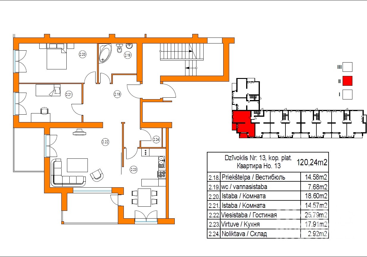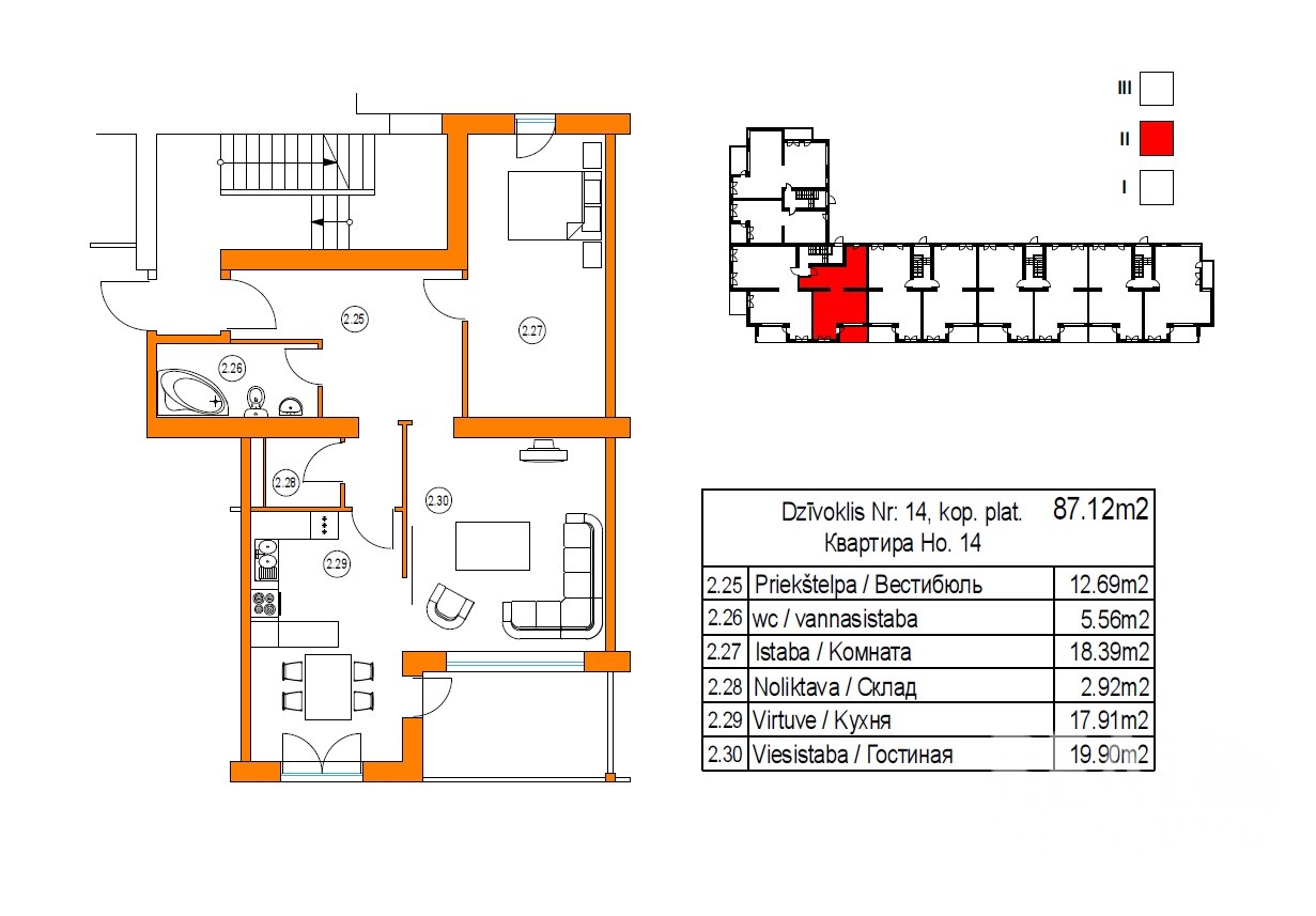 2 комн. квартира находится на морской стороне. Квартира Nr.12 расположена на 2\3 эт., общая площадь - 77 кв.м.